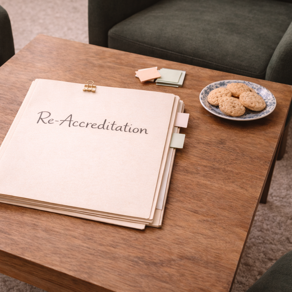 To maintain your Therapeutic School status, you can re-apply for accreditation every two years. It's a simple process that requires evidence of your ongoing work, updates and changes to environment and a record of the continual delivery of wellbeing sessions and daily practices.